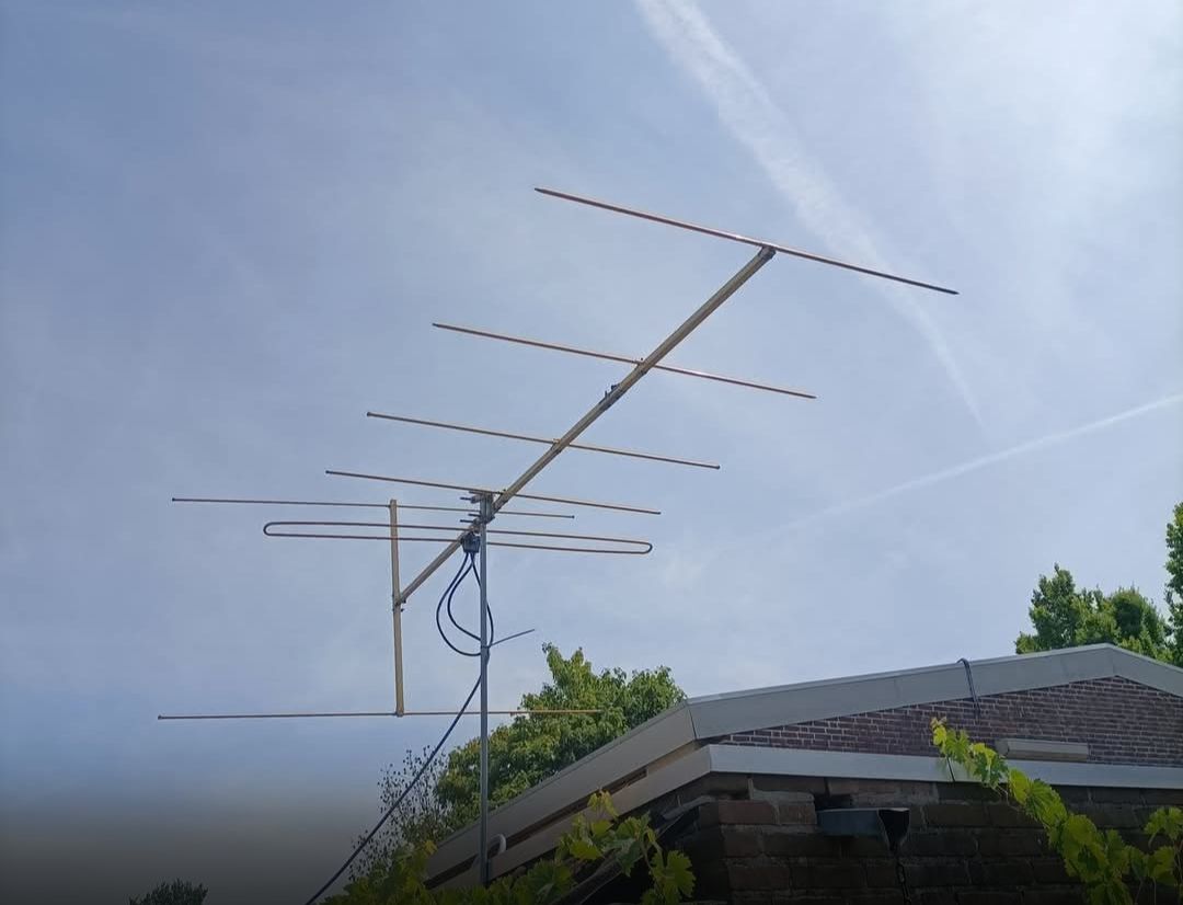 Op de foto zie je een Stolle 7 elements antenne horizontaal geplaatst (want dat ging zo vroeger), bij deze antenne is er een balun toegepast. Deze balun zorgt ervoor dat de antenne gepiekt staat op de gewenste frequentie.